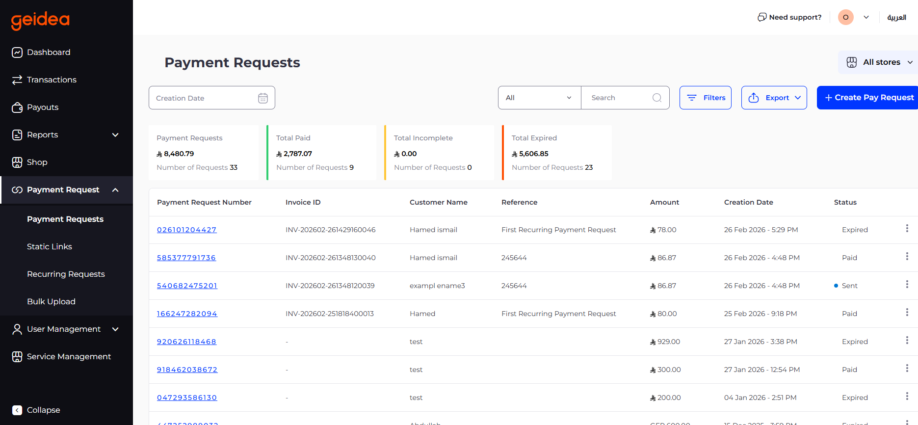 Payment invoices are a convenient method to generate a unique invoiceId that can be used by your customer to make payment. When sent to a customer, the invoiceId can be used to be added in Geidea website to direct your customer to a secure Geidea-hosted payment page, enabling payment via their preferred method (currently supporting cards and select digital wallets). This secure hosted payment page is accessible across all internet-connected devices, ensuring convenience and flexibility for your customers.