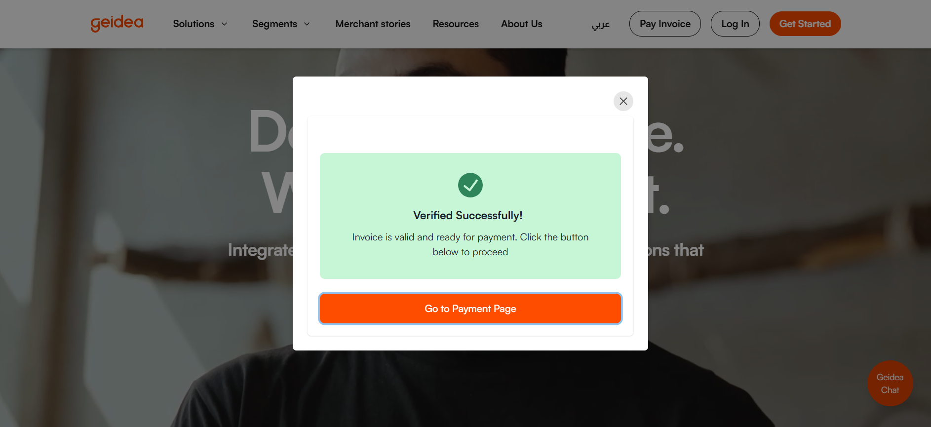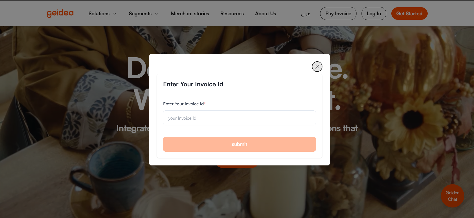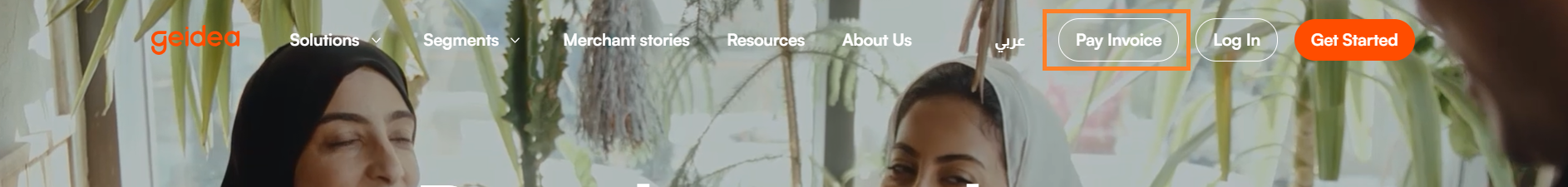 - Customer Navigates to Geidea Official Website & Clicks on "Pay Invoice"