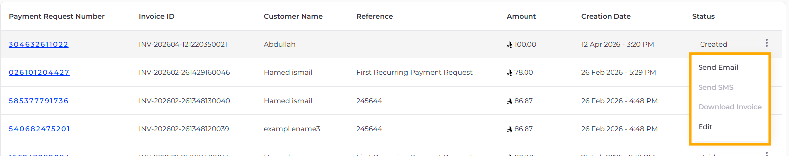 | Viewing & Managing Quick/Standard Invoices | View detail of a payment invoice, edit it or send it to the customer |