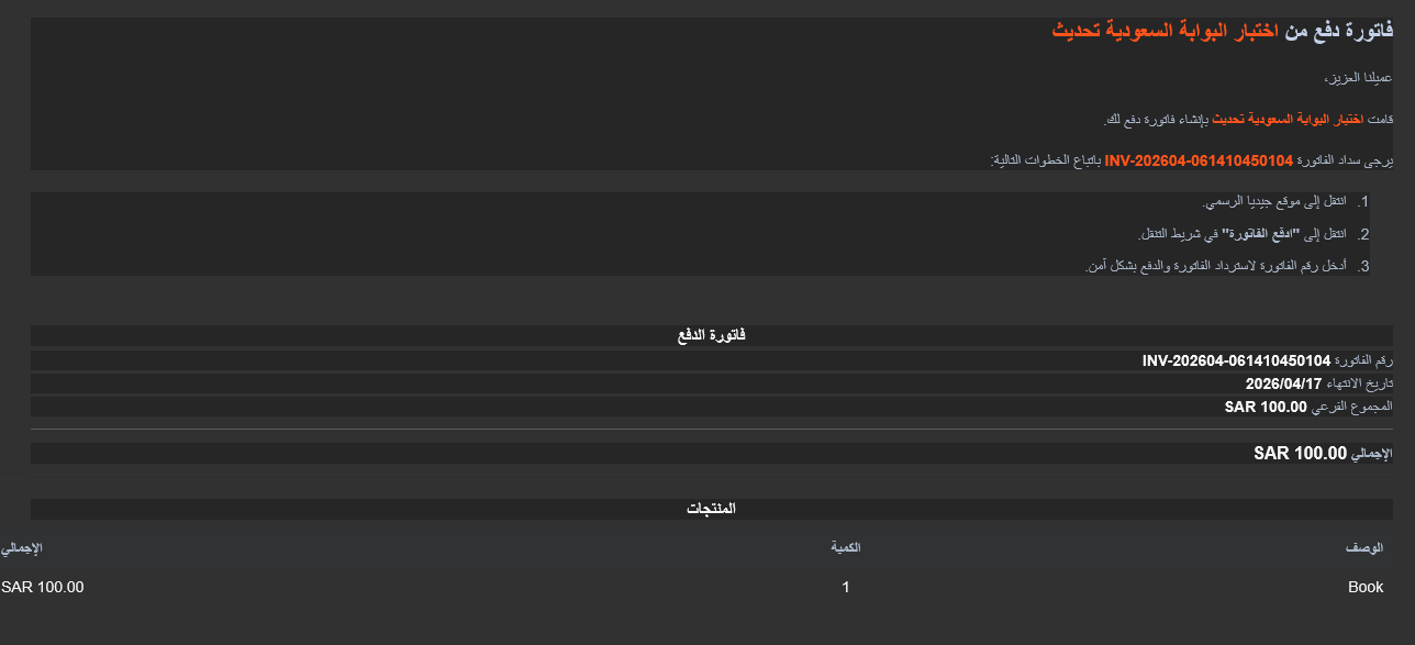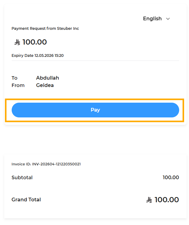 c. Language - Set the default language for your payment invoice, choosing between English and Arabic.