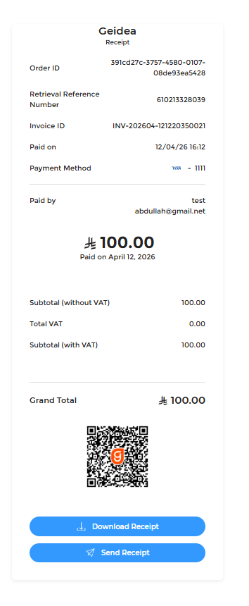 Once submitted, the customer will be redirected to Geidea’s secure payment page, where the payment can be completed using a wide range of supported payment methods, including Visa/Mastercard cards, digital wallets, Buy Now Pay Later (BNPL) options, and more.