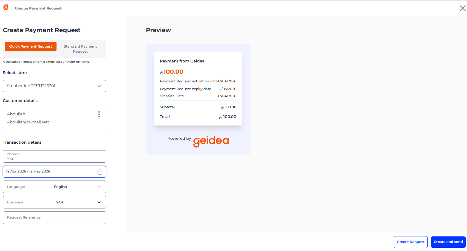 | Create a Quick Payment Invoice | Quickly create a payment invoice by entering minimum details required consisting of customer information and payment amount. The payment invoiceId generated is sent by Geidea based on your customer's contact detail. |